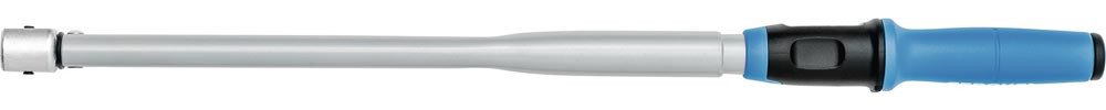für Einsteckwerkzeuge · verstellbarer Drehmomentschlüssel mit Innen-Rechteckaufnahme · für den kontrollierten Rechts- und Linksanzug · mit Stiftsicherung für auswechselbare Einsteckwerkzeuge · inkl. Prüfzertifikat nach DIN EN ISO 6789-2:2017, rückführbar auf Nationale Normale · Knickmechanik mit Gleitrolle garantiert ein fühlbares und hörbares Auslösesignal · justiert auf eine Auslösegenauigkeit von ± 3 % Toleranz vom eingestellten Skalenwert · robuste, lackierte Stahlrohr-Konstruktion, mit verzinkter Aufnahme und glasfaserverstärkten Kunststoffteilen · Doppel-Skala Nm und lbf.ft. geschützt unter einem Sichtfenster mit Lupeneffekt · zusätzliche Mikrometer-Skala mit einer Nm-Teilung (Details siehe Tabelle "Nonius") · ergonomischer Kunststoffgriff · Griff mit Einkerbung in der Griffmitte als Kalibrierhilfe