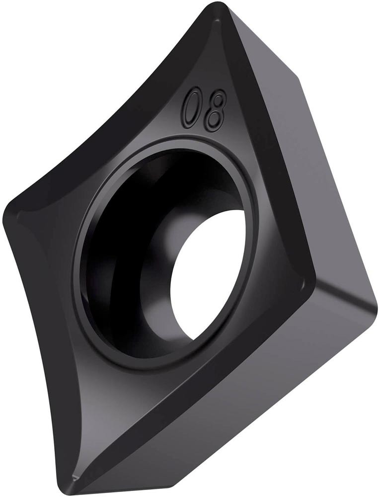 Einseitige positive Drehwendeschneidplatte · 80° Rhombisch mit 7° Freiwinkel · Innenkreisdurchmesser von 12.7mm · 4.76mm Dick · 0.4mm Radius · Indexgenauigkeit nach ISO-Toleranzklasse-G · Spanbrecher SF3 mit verrundeter Schneidkante · im Substrat T8415.