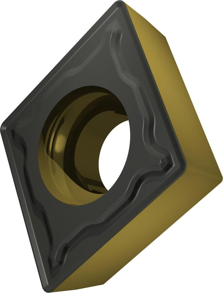 Einseitige positive Drehwendeschneidplatte · 80° Rhombisch mit 7° Freiwinkel · Innenkreisdurchmesser von 7.94mm · 3.18mm Dick · 0.4mm Radius · Indexgenauigkeit nach ISO-Toleranzklasse-M · Spanbrecher FM2 mit verrundeter Schneidkante · im Substrat T9415 · MT-CVD beschichtet WC-Co Substrat im ISO-Bereich P05 -P30 · zum schlichten bis medium bearbeiten von Stählen