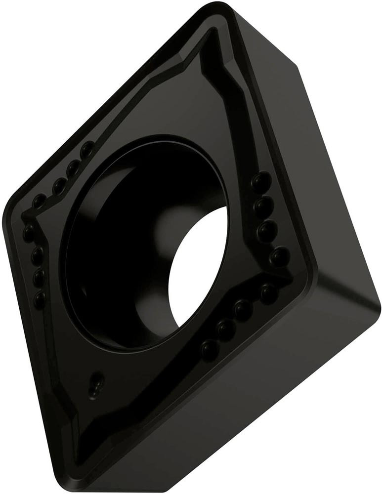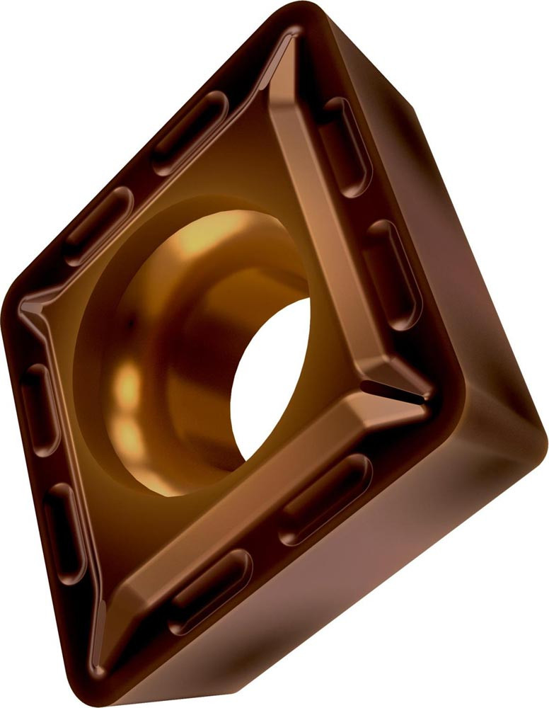 Einseitige positive Drehwendeschneidplatte · 80° Rhombisch mit 7° Freiwinkel · Innenkreisdurchmesser von 12.7mm · 4.76mm Dick · 0.8mm Radius · Indexgenauigkeit nach ISO-Toleranzklasse-M · Spanbrecher FM mit verrundeter Schneidkante · im Substrat T7325 · MT-CVD beschichtet functionally graded WC-Co carbide im ISO-Bereich M10 -M25 · zum schlichten bis medium bearbeiten von nichtrostenden Stählen