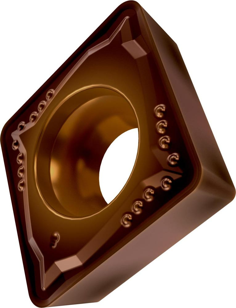 Einseitige positive Drehwendeschneidplatte · 80° Rhombisch mit 7° Freiwinkel · Innenkreisdurchmesser von 12.7mm · 4.76mm Dick · 1.2mm Radius · Indexgenauigkeit nach ISO-Toleranzklasse-M · Spanbrecher FM mit verrundeter Schneidkante · im Substrat T8430 · PVD beschichtet WC-Co Feinkornsubstrat in den ISO-Bereichen P20 -P40 und M20 -M35 · zum schlichten bis medium bearbeiten von Stählen und nichtrostenden Stählen