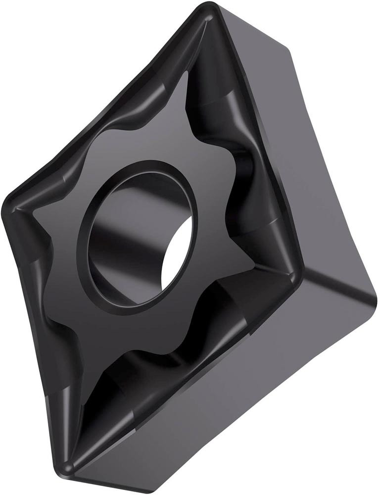 Doppelseitige negative Drehwendeschneidplatte · 80° Rhombisch mit Innenkreisdurchmesser von 12.7mm · 4.76mm Dick · 0.8mm Radius · Indexgenauigkeit nach ISO-Toleranzklasse-M · Spanbrecher NF mit verrundeter Schneidkante · im Substrat T6310 · PVD beschichtet WC-Co Feinstkornsubstrat in den ISO-Bereichen P01 -P15 und M01 -M15 · zum schlichten bis medium bearbeiten von Stählen und nichtrostenden Stählen