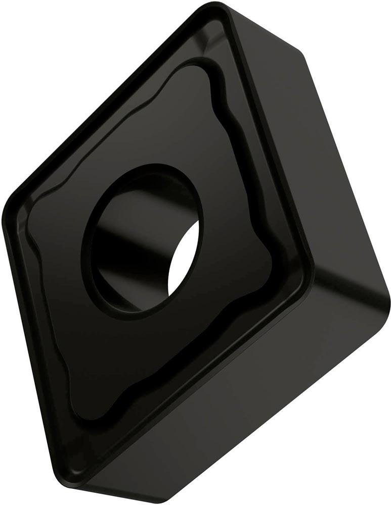 Doppelseitige negative Drehwendeschneidplatte · 80° Rhombisch mit Innenkreisdurchmesser von 12.7mm · 4.76mm Dick · 1.2mm Radius · Indexgenauigkeit nach ISO-Toleranzklasse-M · Spanbrecher NM mit verrundeter Schneidkante · im Substrat T9325 · MT-CVD beschichtet functionally graded WC-Co carbide in den ISO-Bereichen P15 -P35 und M10 -M30 · zum schlichten bis schruppen bearbeiten von Stählen und nichtrostenden Stählen