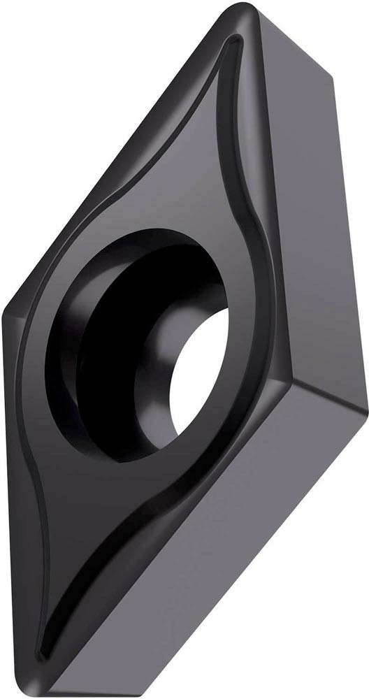 Einseitige positive Drehwendeschneidplatte · 55° Rhombisch mit 7° Freiwinkel · Innenkreisdurchmesser von 9.525mm · 3.97mm Dick · 0.4mm Radius · Indexgenauigkeit nach ISO-Toleranzklasse-G · Spanbrecher NF1 mit verrundeter Schneidkante · im Substrat T6310 · PVD beschichtet WC-Co Feinstkornsubstrat in den ISO-Bereichen P01 -P15/M01 -M15 und S01 -S15 · zum schlichten bis medium bearbeiten von Stählen · nichtrostenden Stählen und Superlegierungen