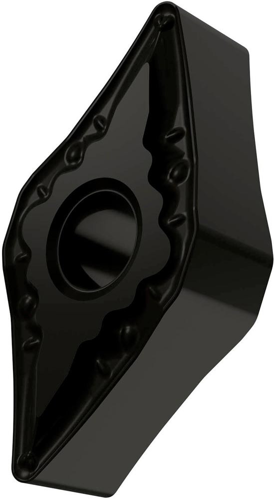 Doppelseitige negative Drehwendeschneidplatte · 55° Rhombisch mit Innenkreisdurchmesser von 9.525mm · 4.76mm Dick · 0.8mm Radius · Indexgenauigkeit nach ISO-Toleranzklasse-M · Spanbrecher FM mit verrundeter Schneidkante · im Substrat T7325 · MT-CVD beschichtet functionally graded WC-Co carbide · zum schlichten bis medium bearbeiten