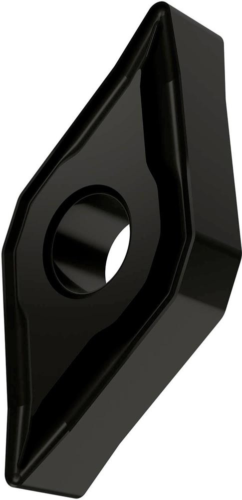 Doppelseitige negative Drehwendeschneidplatte · 55° Rhombisch mit Innenkreisdurchmesser von 12.7mm · 6.35mm Dick · 0.4mm Radius · Indexgenauigkeit nach ISO-Toleranzklasse-M · Spanbrecher NF mit verrundeter Schneidkante · im Substrat T7325 · MT-CVD beschichtet functionally graded WC-Co carbide im ISO-Bereich M10 -M25 · zum schlichten bis medium bearbeiten von nichtrostenden Stählen