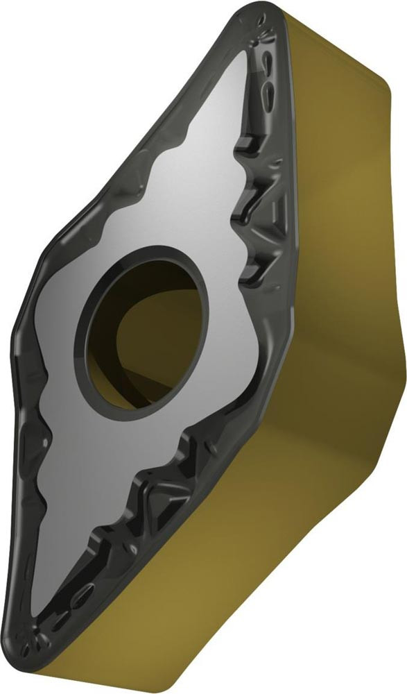 Doppelseitige negative Drehwendeschneidplatte · 55° Rhombisch mit Innenkreisdurchmesser von 12.7mm · 6.35mm Dick · 1.6mm Radius · Indexgenauigkeit nach ISO-Toleranzklasse-M · Spanbrecher FM mit verrundeter Schneidkante · im Substrat T9415 · MT-CVD beschichtet WC-Co Substrat im ISO-Bereich P05 -P30 · zum schlichten bis medium bearbeiten von Stählen