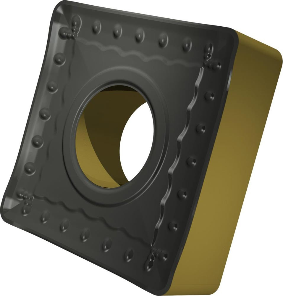 Doppelseitige negative Drehwendeschneidplatte · Viereckig mit Innenkreisdurchmesser von 19.05mm · 6.35mm Dick · 1.2mm Radius · Indexgenauigkeit nach ISO-Toleranzklasse-M · Spanbrecher OR mit verrundeter Schneidkante · im Substrat T9415 · MT-CVD beschichtet WC-Co Substrat im ISO-Bereich P05 -P30 · zum medium bis schweres schruppen bearbeiten von Stählen