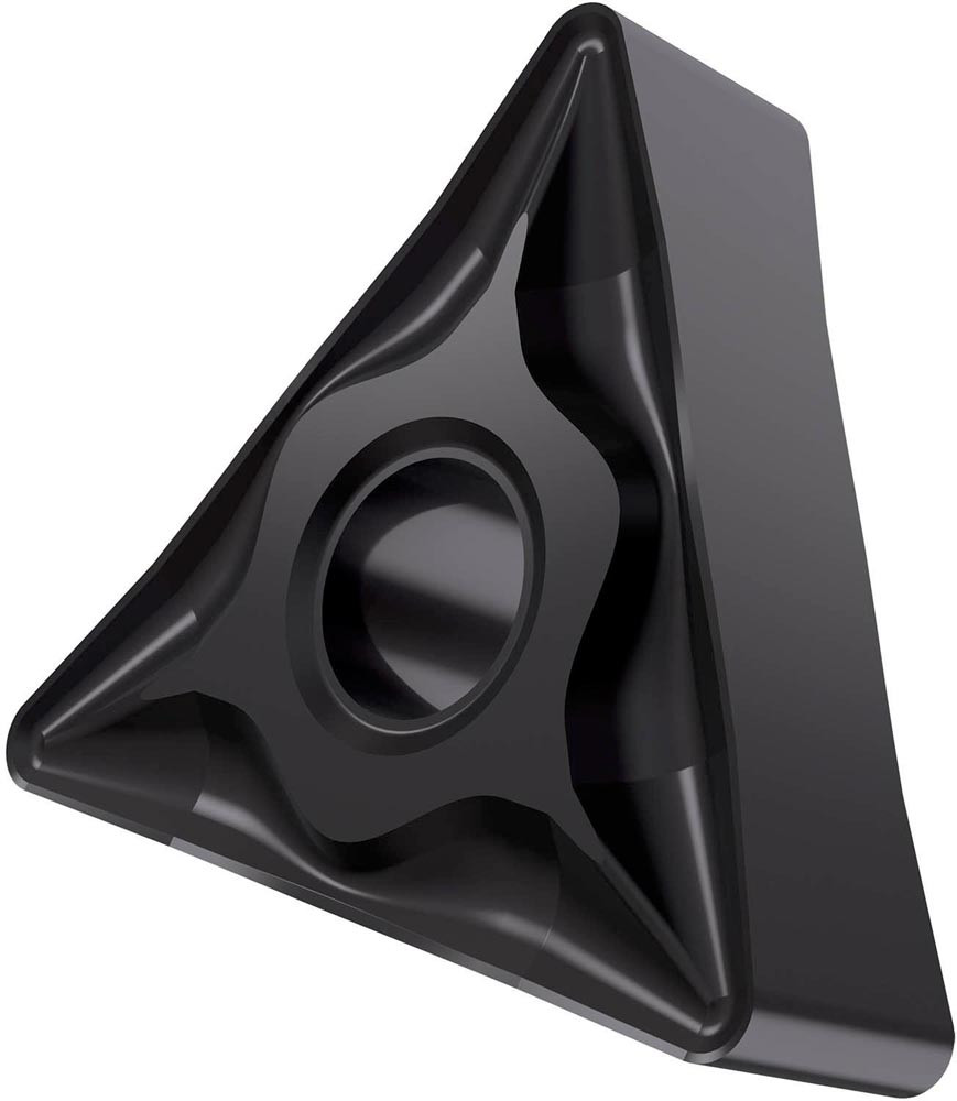Doppelseitige negative Drehwendeschneidplatte · Triangular mit Innenkreisdurchmesser von 9.525mm · 4.76mm Dick · 0.4mm Radius · Indexgenauigkeit nach ISO-Toleranzklasse-M · Spanbrecher NF mit verrundeter Schneidkante · im Substrat T6310 · PVD beschichtet WC-Co Feinstkornsubstrat in den ISO-Bereichen P01 -P15 und M01 -M15 · zum schlichten bis medium bearbeiten von Stählen und nichtrostenden Stählen