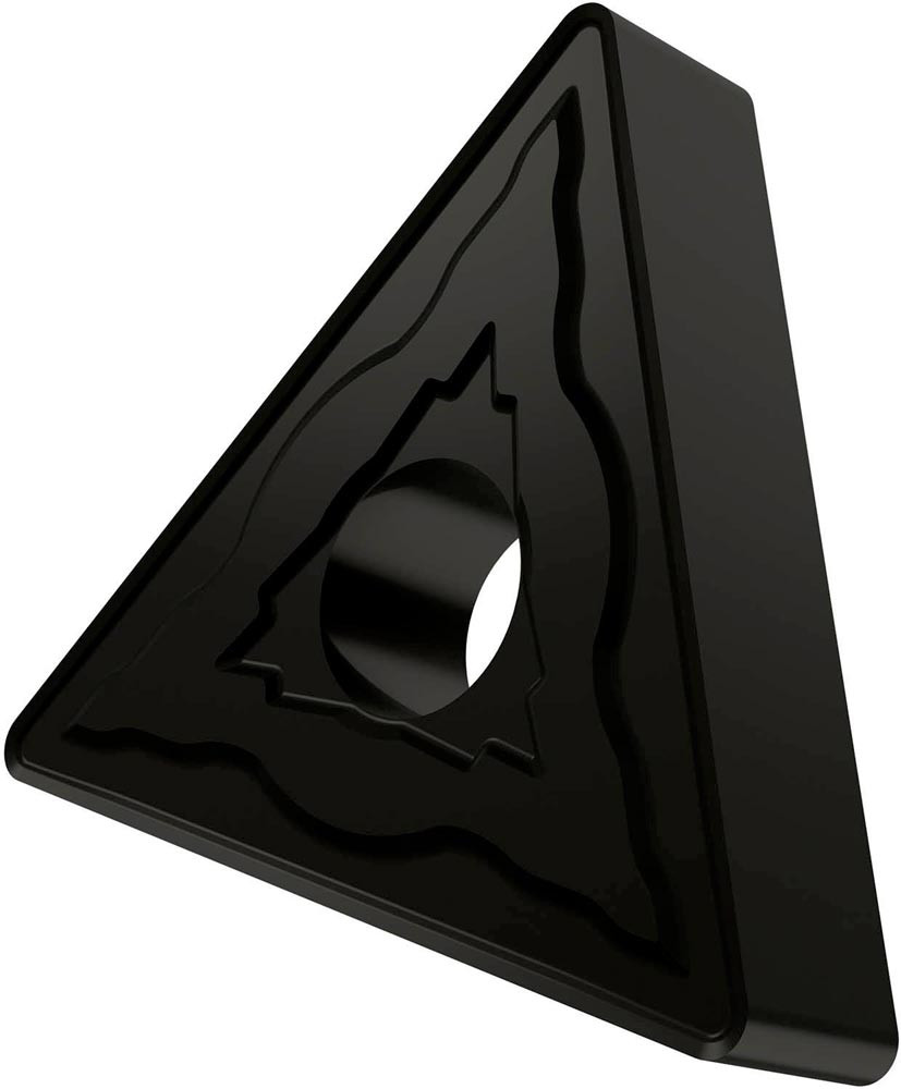 Doppelseitige negative Drehwendeschneidplatte · Triangular mit Innenkreisdurchmesser von 9.525mm · 4.76mm Dick · 0.4mm Radius · Indexgenauigkeit nach ISO-Toleranzklasse-M · Spanbrecher NMR mit verrundeter Schneidkante · im Substrat T7335 · MT-CVD beschichtet functionally graded WC-Co carbide in den ISO-Bereichen M20 -M40 und S15 -S25 · zum schlichten bis schruppen bearbeiten von nichtrostenden Stählen und Superlegierungen