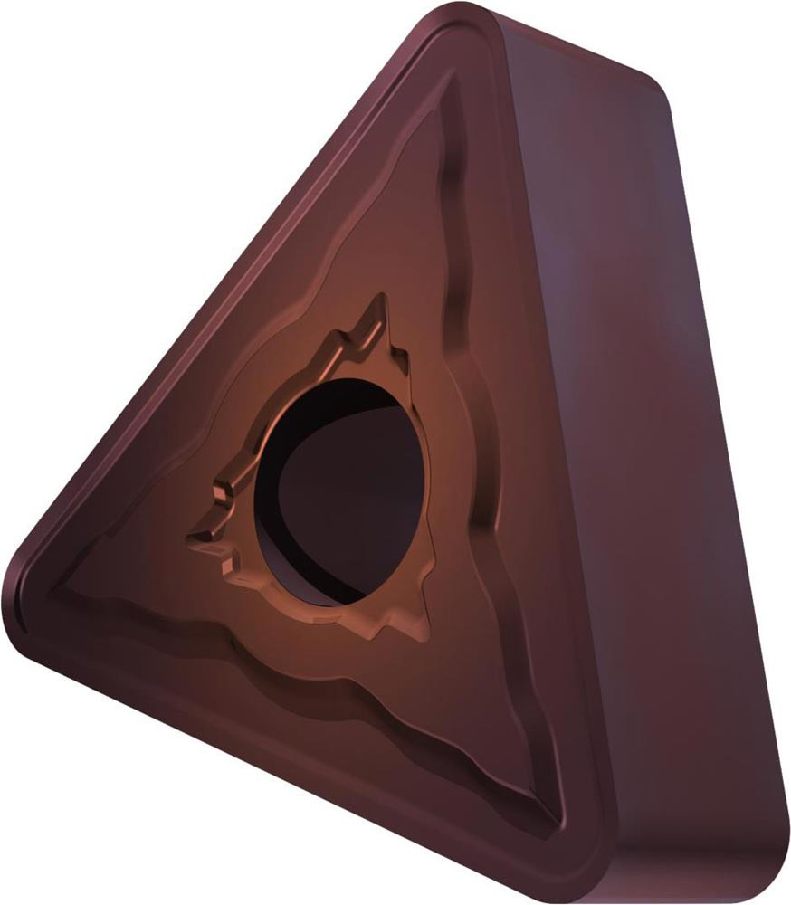 Doppelseitige negative Drehwendeschneidplatte · Triangular mit Innenkreisdurchmesser von 9.525mm · 4.76mm Dick · 1.2mm Radius · Indexgenauigkeit nach ISO-Toleranzklasse-M · Spanbrecher NMR mit verrundeter Schneidkante · im Substrat T8430 · PVD beschichtet WC-Co Feinkornsubstrat in den ISO-Bereichen P20 -P40 und M20 -M35 · zum schlichten bis schruppen bearbeiten von Stählen und nichtrostenden Stählen