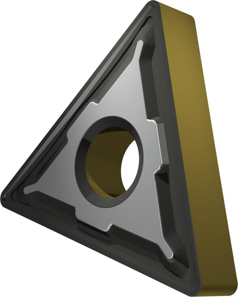 Doppelseitige negative Drehwendeschneidplatte · Triangular mit Innenkreisdurchmesser von 12.7mm · 4.76mm Dick · 0.8mm Radius · Indexgenauigkeit nach ISO-Toleranzklasse-M · Spanbrecher R mit verrundeter Schneidkante · im Substrat T9415 · MT-CVD beschichtet WC-Co Substrat im ISO-Bereich P05 -P30 · zum medium bis schruppen bearbeiten von Stählen