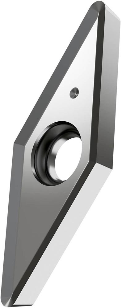 Einseitige positive Drehwendeschneidplatte · 35° Rhombisch mit 7° Freiwinkel · Innenkreisdurchmesser von 7.94mm · 3.18mm Dick · 0.8mm Radius · Indexgenauigkeit nach ISO-Toleranzklasse-G · Spanbrecher SF2 mit verrundeter Schneidkante · im Substrat HF7 · unbeschichtet WC-Co Feinkornsubstrat · zum schlichten bis medium bearbeiten