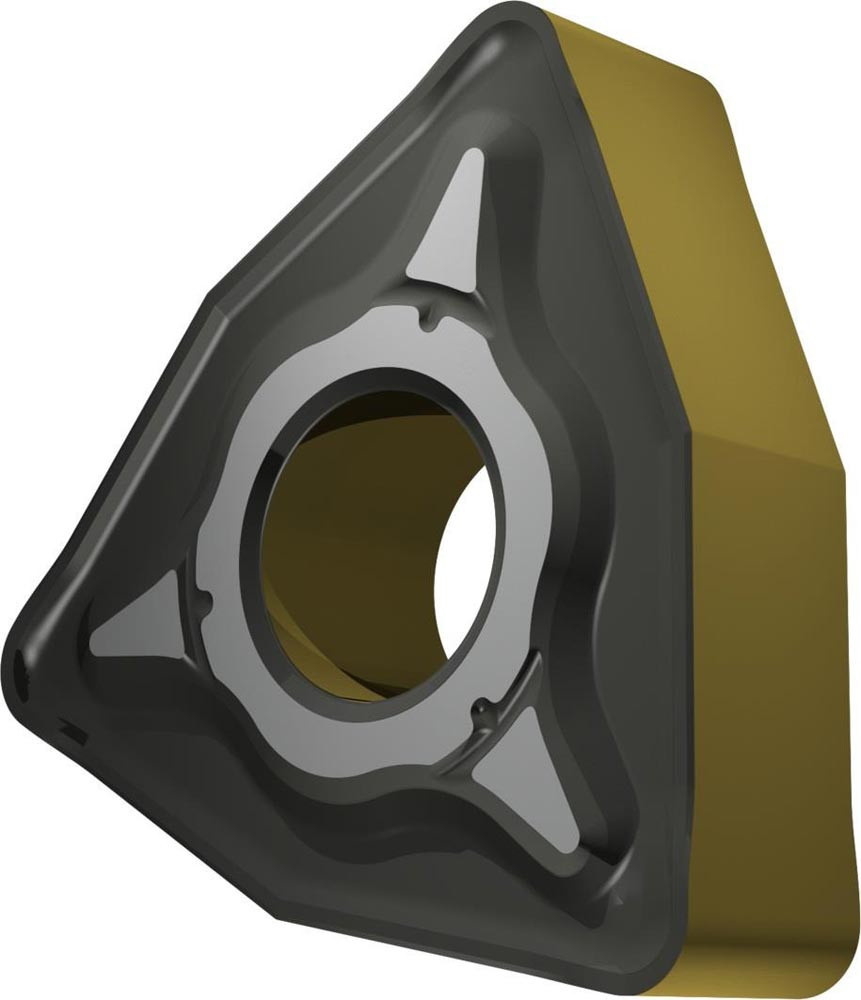 Doppelseitige negative Drehwendeschneidplatte · 80° Trigon mit Innenkreisdurchmesser von 12.7mm · 4.76mm Dick · 1.2mm Radius und Indexgenauigkeit nach ISO-Toleranzklasse-M · Spanbrecher NRM · im Substrat T9415 · MT-CVD beschichtet WC-Co Substrat im ISO-Bereich P05 -P30 · zum medium bis schruppen bearbeiten von Stählen