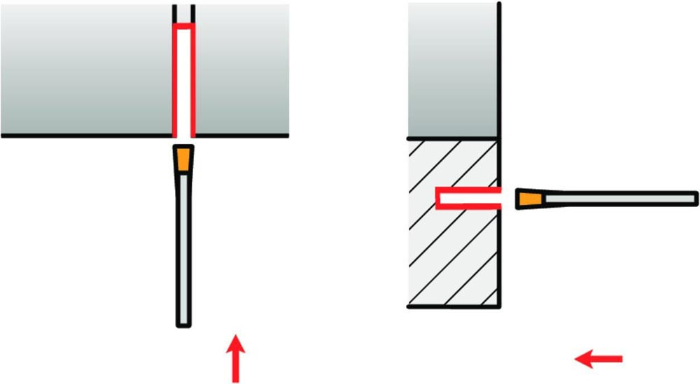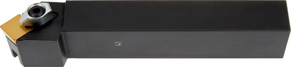 Dreh-Trägerwerkzeug von oben geklemmt zum spannen von Viereckig positive Wendeschneidplatten mit einem Innenkreisdurchmesser von 12.7mm · 3.18mm Dick (ISO Bezeichnung SP.. 1203... ) · rechte Ausführung zum 45° Stirndrehen mit abgesetzem Schaft · 25mm Werkzeughöhe x 25mm Breite x 150mm Länge für entgraten · Kegeldrehen · Kopierdrehen in einer und mehreren Richtungen · Stirndrehen ohne Schulter und Längsdrehen ohne Schulter