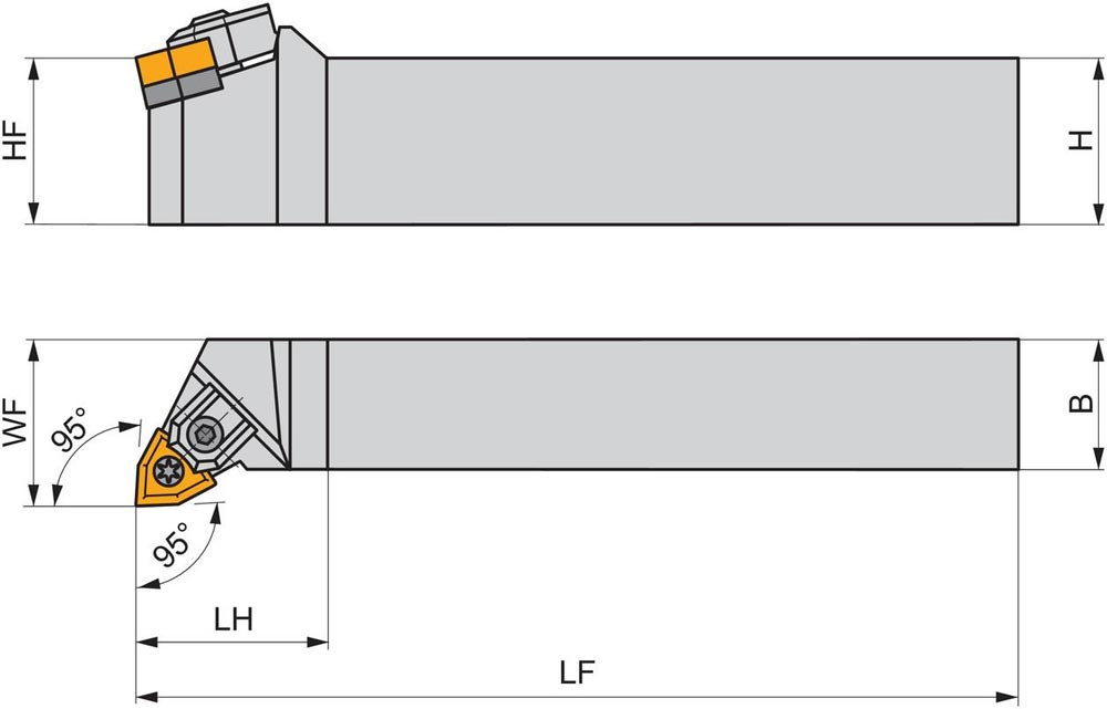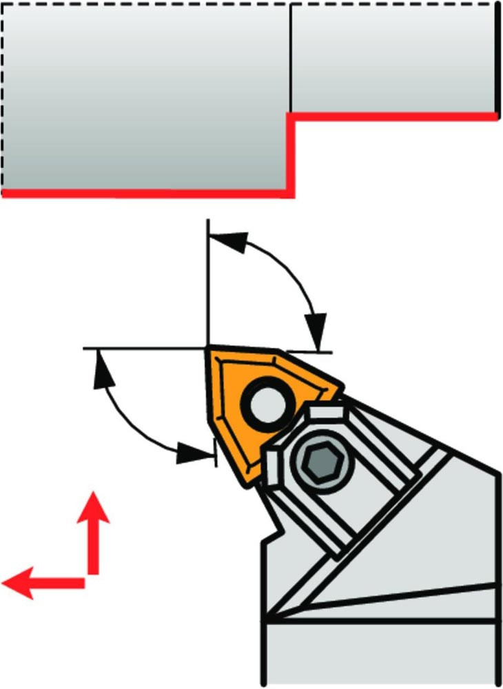 Dreh-Trägerwerkzeug multi lock zum spannen von 80° Trigonal negative Wendeschneidplatten mit einem Innenkreisdurchmesser von 12.7mm · 4.76mm Dick (ISO Bezeichnung WN.. 0804.. ) · linke Ausführung zum 95° Stirn-und Längsdrehen mit abgesetzem Schaft · 40mm Werkzeughöhe x 40mm Breite x 250mm Länge für Kegeldrehen · Stirndrehen mit und ohne Schulter und Längsdrehen mit und ohne Schulter