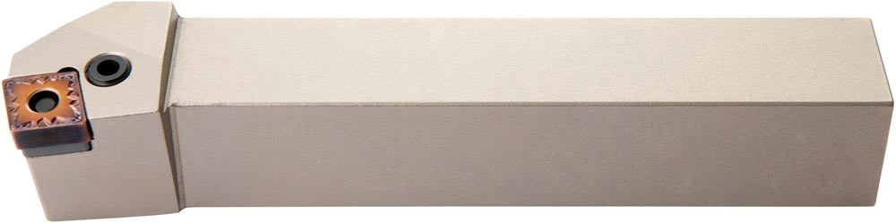 Dreh-Trägerwerkzeug mit Kniehebelklemmung zum spannen von 80° Rhombus negative Wendeschneidplatten mit einem Innenkreisdurchmesser von 19.05mm · 6.35mm Dick (ISO Bezeichnung CN.. 1906.. ) · rechte Ausführung zum 75° Längsdrehen mit abgesetzem Schaft · 32mm Werkzeughöhe x 32mm Breite x 170mm Länge für Stirndrehen ohne Schulter