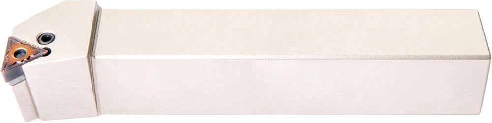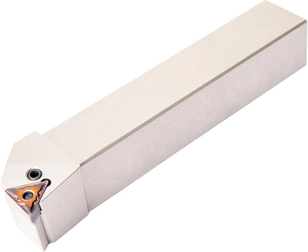 Dreh-Trägerwerkzeug mit Kniehebelklemmung zum spannen von Triangular negative Wendeschneidplatten mit einem Innenkreisdurchmesser von 9.525mm · 4.76mm Dick (ISO Bezeichnung TN.. 1604.. ) · rechte Ausführung zum 90° Längsdrehen mit abgesetzem Schaft · 20mm Werkzeughöhe x 20mm Breite x 125mm Länge für Stirndrehen ohne Schulter