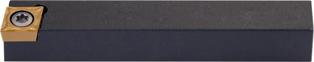 Dreh-Trägerwerkzeug mit Schraubklemmung zum spannen von 80° Rhombus positive Wendeschneidplatten mit einem Innenkreisdurchmesser von 6.35mm · 2.38mm Dick (ISO Bezeichnung CC.. 0602.. ) · rechte Ausführung zum 90° Stirndrehen mit Zylinderschaft · 10mm Werkzeughöhe x 10mm Breite x 70mm Länge für entgraten · Kegeldrehen und Längsdrehen mit und ohne Schulter