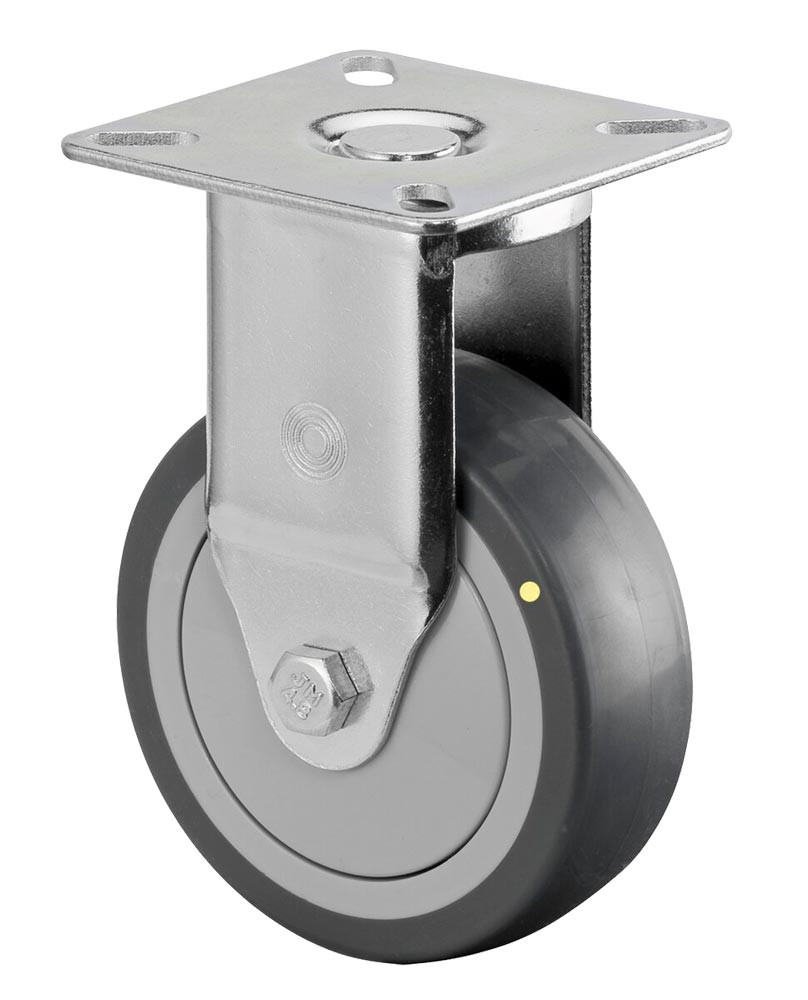 ESD-Apparaterolle, Bockrolle, Gummi thermoplastisch grau, Durchm. 50 mm, Traglast 50 kg, Kugellager, Anschraubplatte
