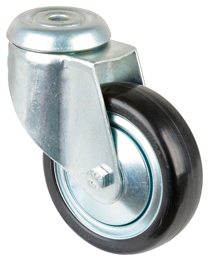 ESD-Apparaterolle, Lenkrolle, Gummi thermoplastisch grau, Durchm. 100 mm, Traglast 80 kg, Kugellager, Rückenloch