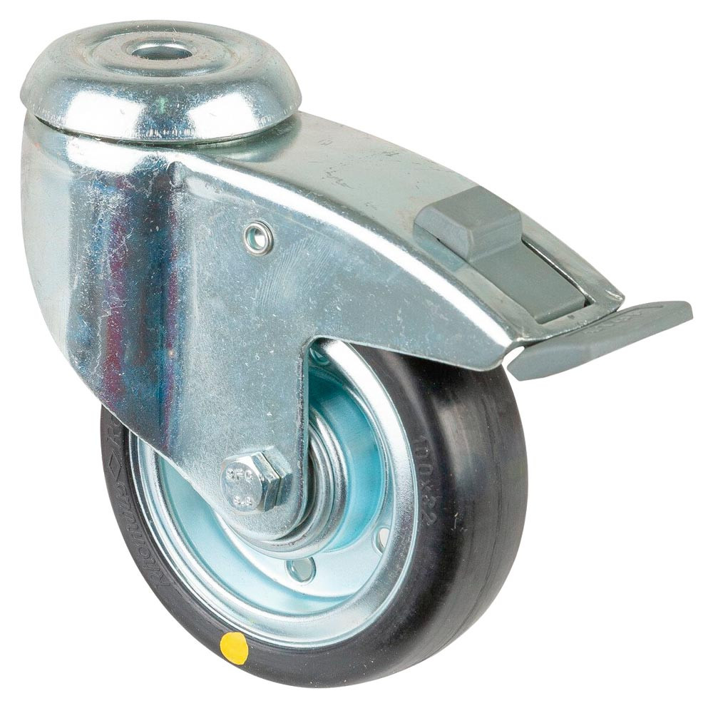 ESD-Apparaterolle, Lenkrolle m. Festst., Gummi thermoplastisch grau, Durchm. 125 mm, Traglast 100 kg, Kugellager, Rückenloch