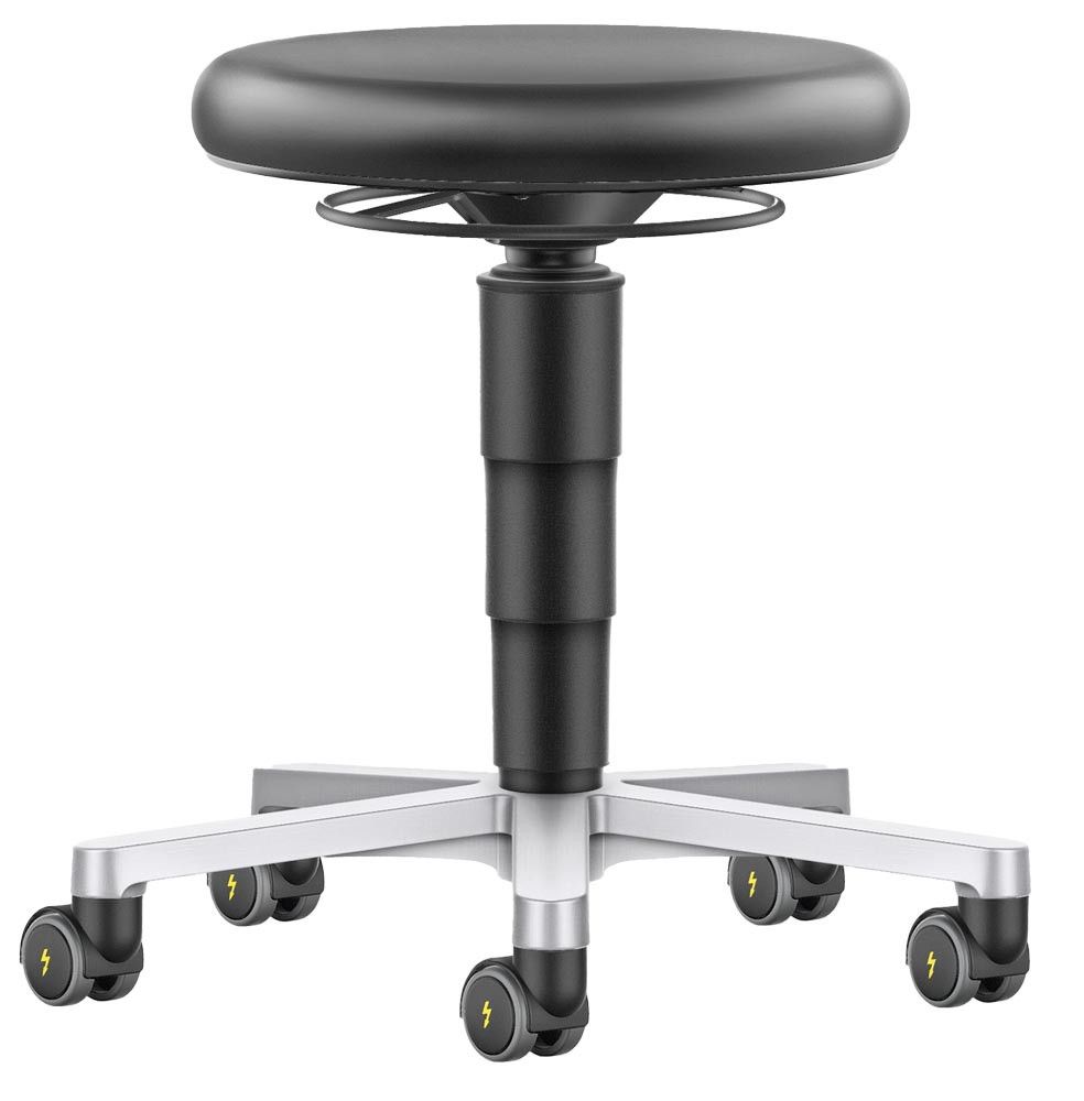 ESD-Arbeitshocker mit Gasfeder-Hnverstellung, mit Kunstleder-Sitzfläche schwarz und Rollen, Sitzfläche Durchm. 400 mm, Sitz H 450-650 mm