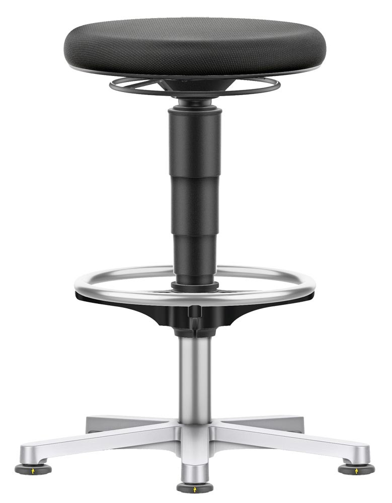 · Sehr großer Sitzhöhenverstellbereich · Höhenverstellung durch Ringauslösung · Fugenarm, leicht zu reinigen, desinfizierbar · Fußkreuz aus Aluminium Ø 540 mm · Platzsparend und leicht mobil · Für Industrie, Dienstleistungen und Labor · Schwarzer Farbring zum Schutz der Polster · ESD-konform nach EN 61340-5-1