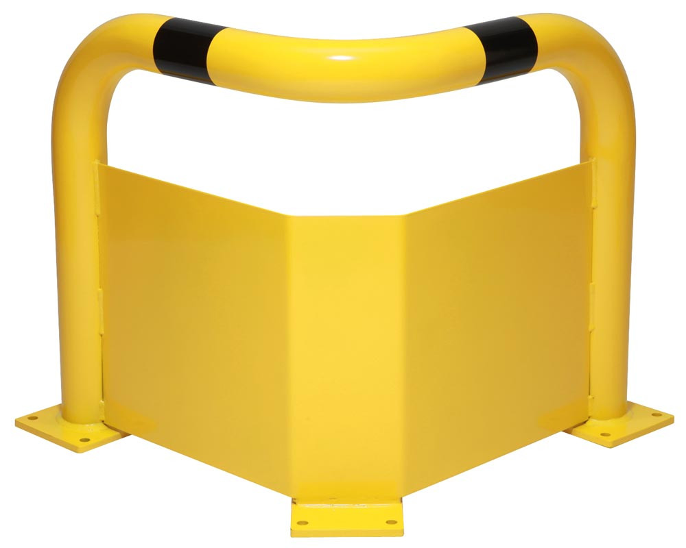 Eck-Rammschutz-Bügel, mit Unterfahrschutz, Rundrohr 76/3 mm, zum Aufdübeln, Innenbereich, Farbe gelb/schwarz, BxTxH 600x600x350 mm EP551617