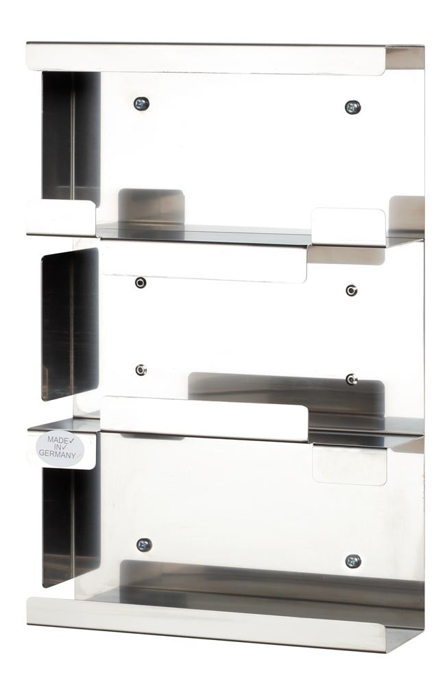 Edelstahl Halterung, 3-fach für Handschuhboxen, offen, 250x80x390 mm, inkl. Montagematerial