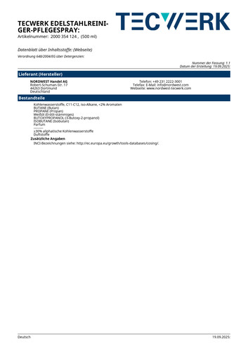| REACH - H-Sätze | EUH066 - Wiederholter Kontakt kann zu spröder oder rissiger Haut führen. |