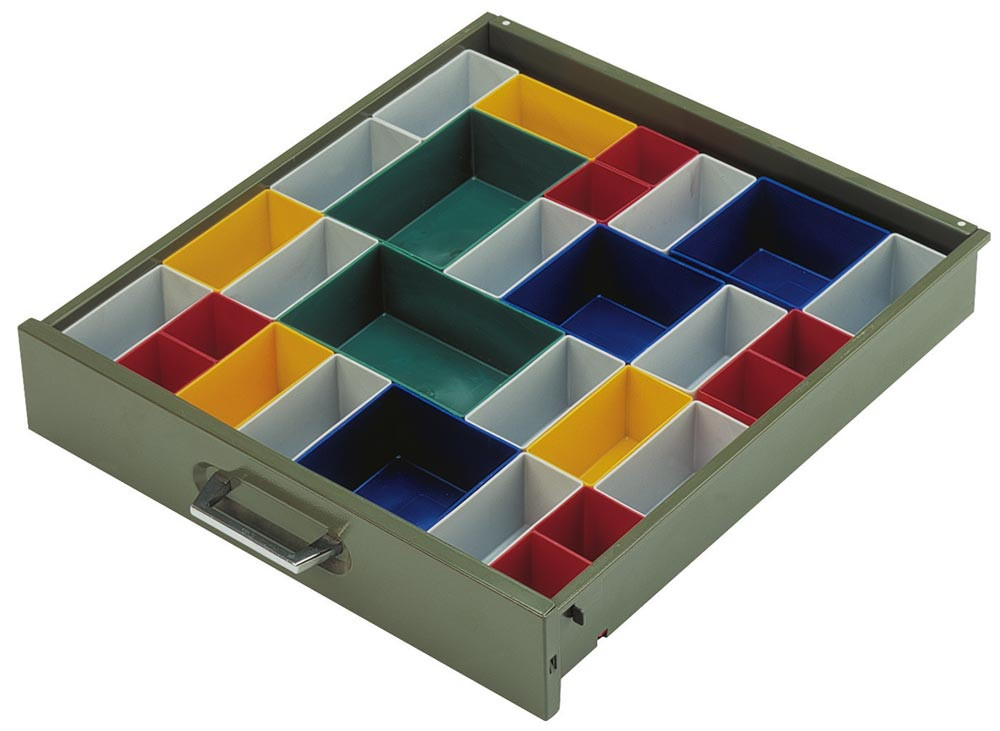 ∙ Einsatzkästen aus hochschlagfestem Polystyrol ∙ Für Schubladen und Schränke sowie Sortimentskästen∙ Wahlweise in rot, grau, gelb, grün, blau