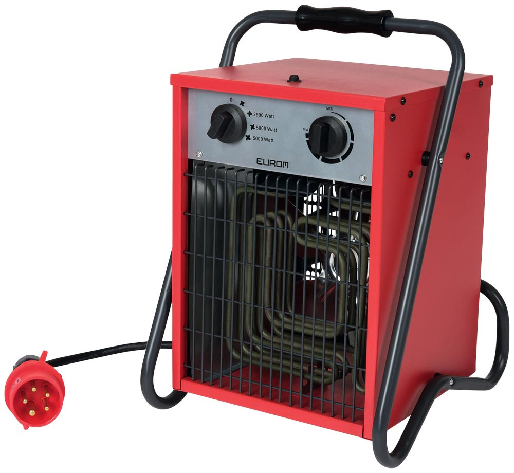 elektrischer Heizlüfter · 400 V · 5000 Watt · mit Kaltluftventilator und Thermostat · spritzwassergeschützt · robustes Metallgehäuse · mit Überhitzungsschutz