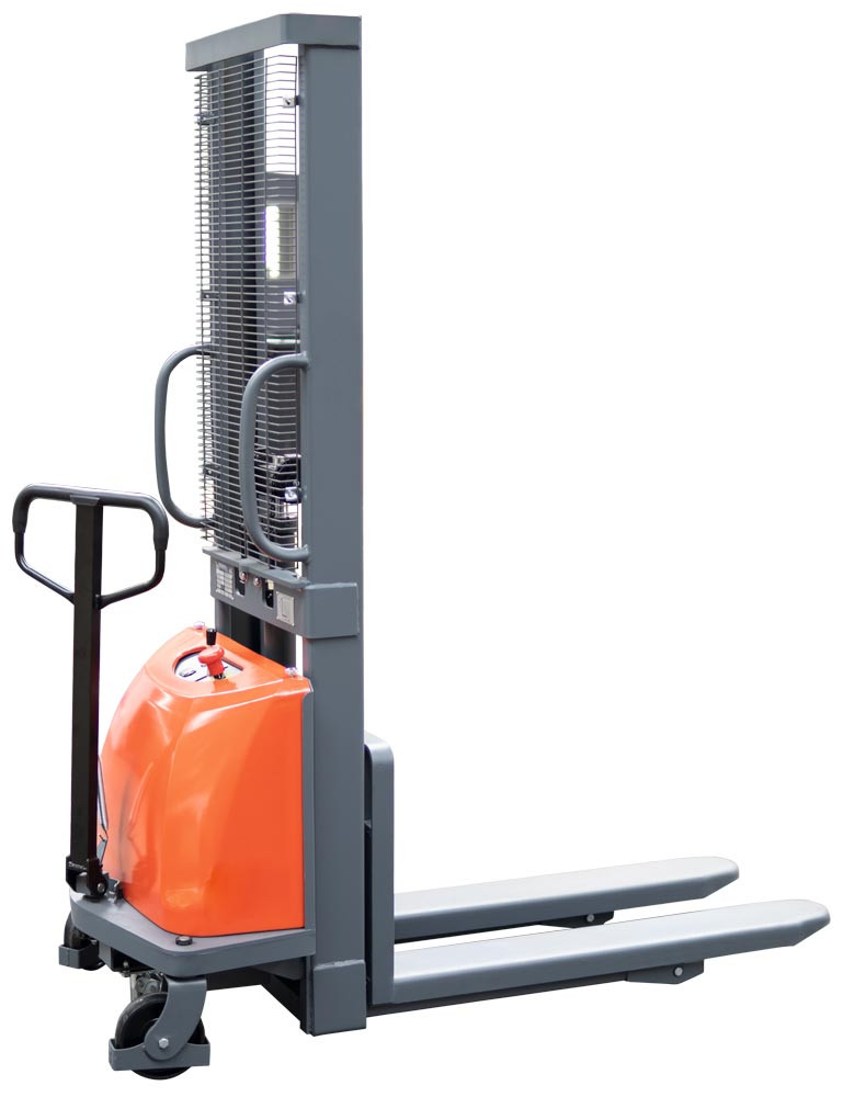∙ Stabile, robuste Bauweise ∙ Elektrohydraulisches Hubaggregat 1,5 kW ∙ Präzise Hub- und Senkvorgänge ∙ Überlastsicherung ∙ Stabile, ummantelte Stahlrohrdeichsel ∙ Lenkung durch handdeichselgesteuerte Achsschenkellenkung ∙ Gabeln entsprechen der Palettennorm ∙ Nylonbereifung ∙ 2 Lenkrollen 180 x 50 mm mit Feststeller, 2 Tandem-Gabelrollen 80 x 78 mm ∙ Lieferung inklusive externem Ladegerät