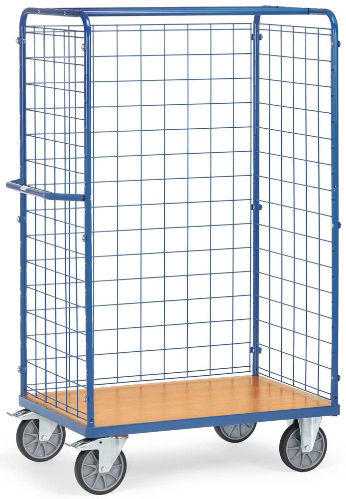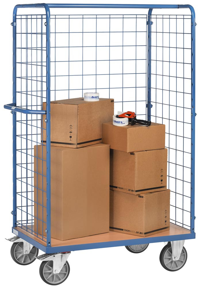 Paketwagen, 3 Gitterwände, Ladefläche LxB 1000x600 mm, Außenmaße LxBxH 1169x609x1800 mm, Traglast 600 kg, RAL 5007 brillantblau EP551524