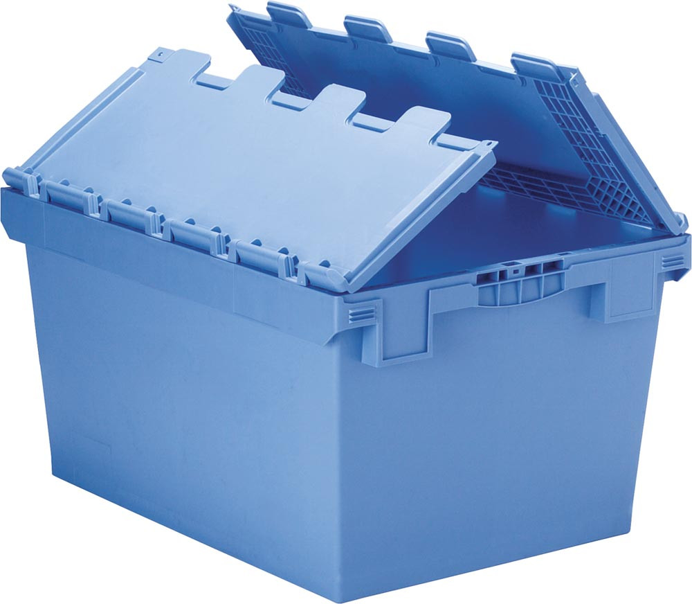 Euronorm-Mehrwegbehälter, Klappdeckel, Volumen 74 Liter, LxBxH 610x400x440 mm, Farbe blau, VE 2 Stück