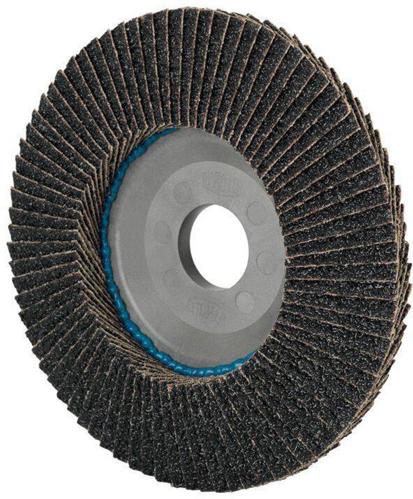 Premium-Fächerscheibe C-TRIM mit höchster Lebensdauer und exzellenter Abtragsleistung · durch den Kunststoffkörper ist die Scheibe trimmbar · verdichtetes Leinen am Rand der Scheibe sorgt für eine hohe Stabilität beim Kantenschleifen und daher länger nutzbar · geeignet zur Schweißnahtbearbeitung sowie Kanten- und Flächenschliff · Bohrung 22,23 mm Ø