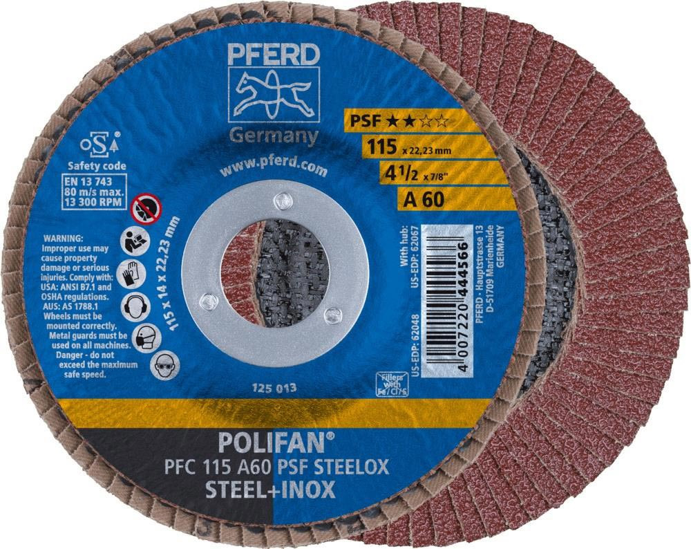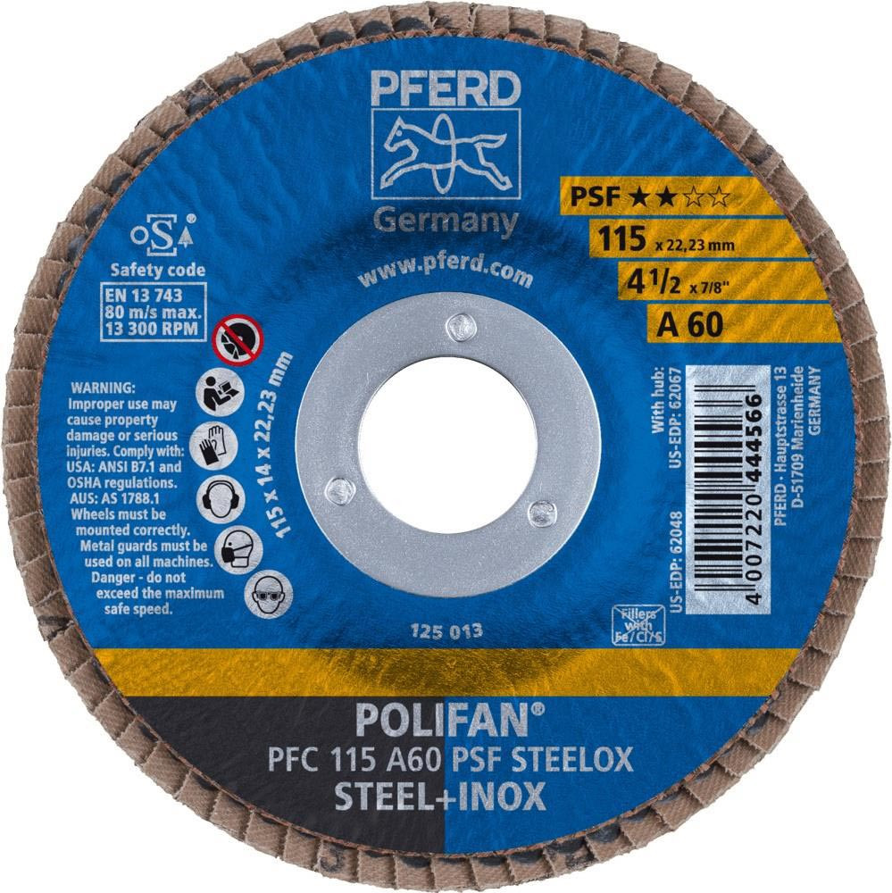 Fächerscheibe POLIFAN A PSF STEELOX Ø 115 mm Körnung A-60 konisch Stahl/Holz Normalkorund E6015246