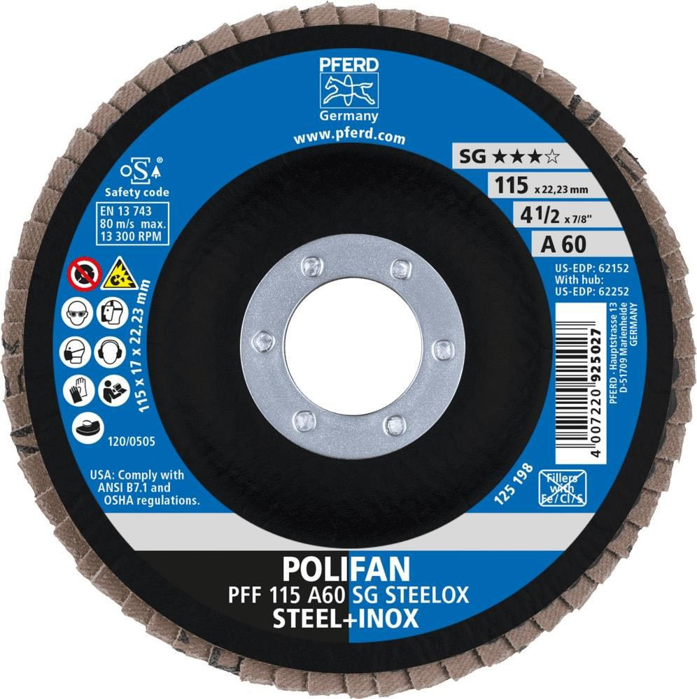 Fächerscheibe POLIFAN A SG STEELOX Ø 115 mm Körnung 60 flach INOX Normalkorund