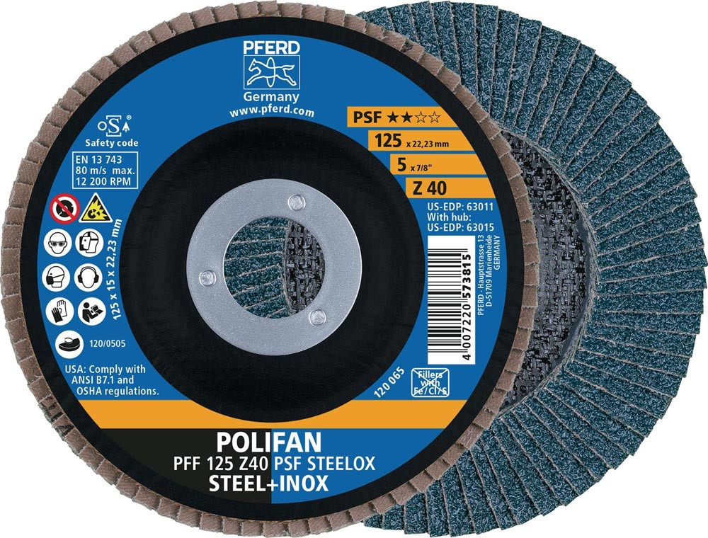 Fächerschleifscheibe Ø 125 mm Körnung 40 flach Edelstahl (INOX) Zirkonkorund Z E6481750