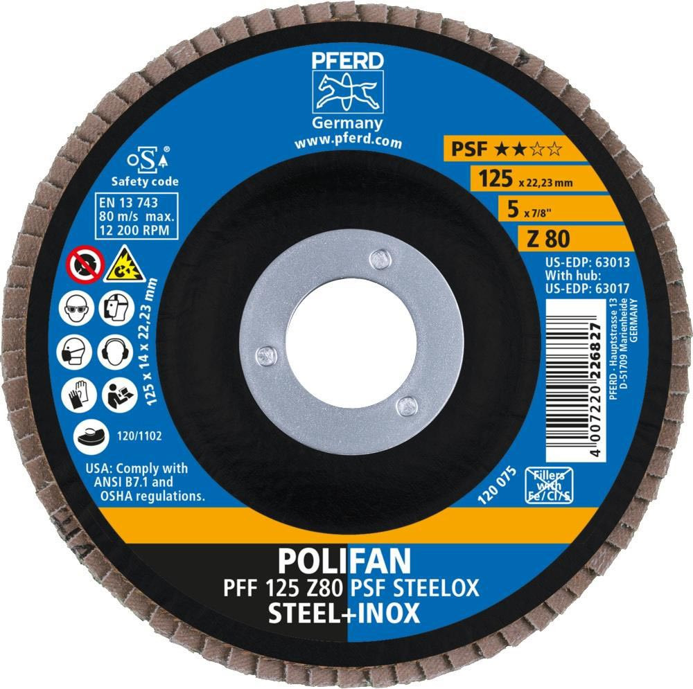 Fächerschleifscheibe Ø 125 mm Körnung 80 flach Edelstahl (INOX) Zirkonkorund Z