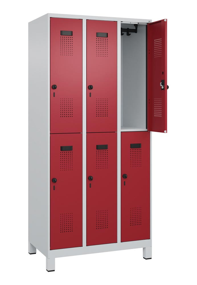 Fächerschrank, Stahl, doppelstöckig, 3x2 Fächer, Abt.B 300 mm, Füße, Drehriegel, BxTxH 900x500x1950 mm, Farbwahl