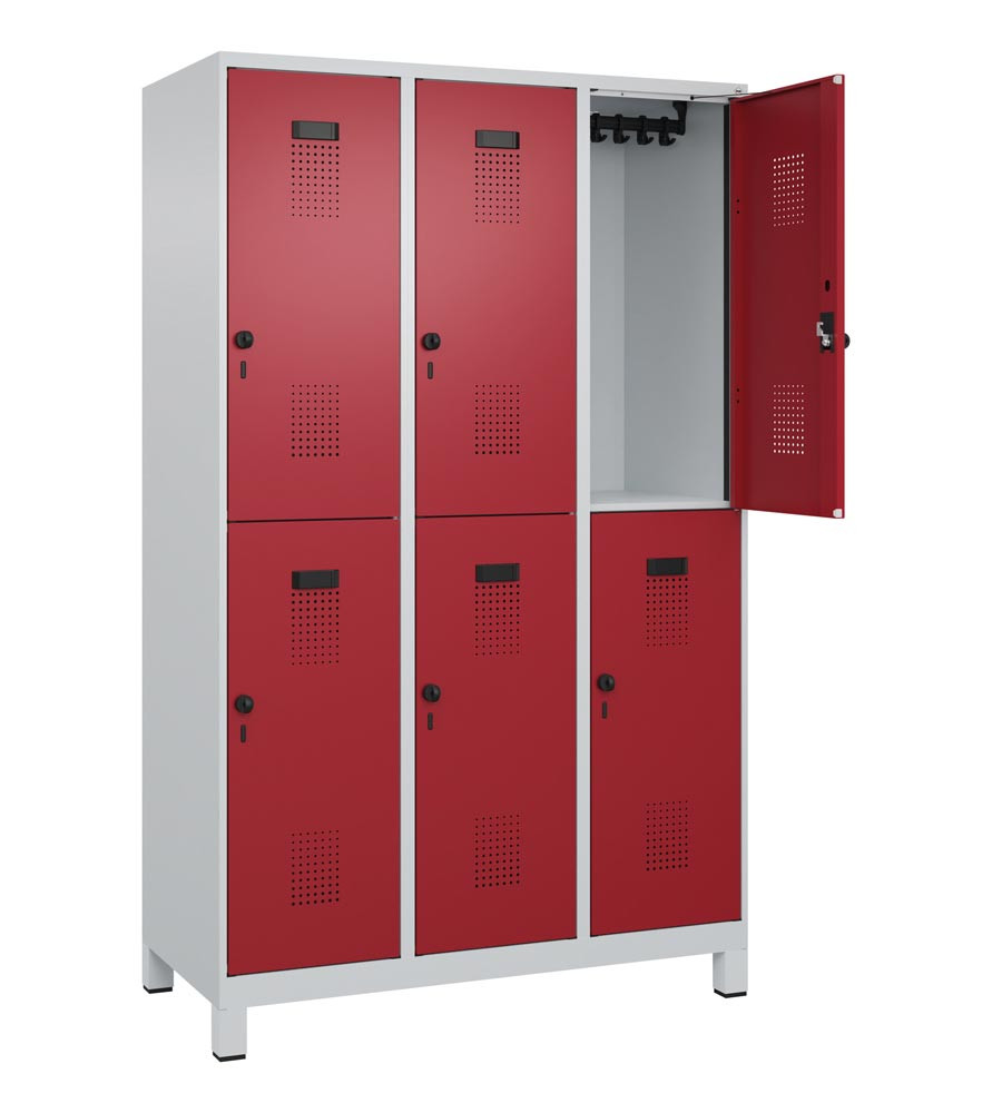 Fächerschrank, Stahl, doppelstöckig, 3x2 Fächer, Abt.B 400 mm, Füße, Drehriegel, BxTxH 1200x500x1950 mm, Farbwahl