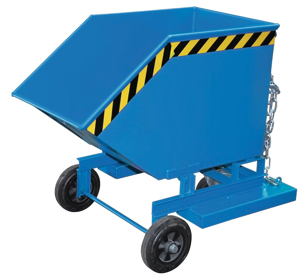 Fahrbarer Kippbehälter mit Einfahrtaschen, Volumen 0,25 cbm, LxBxH 1115x820x990 mm, lackiert RAL 5012 lichtblau