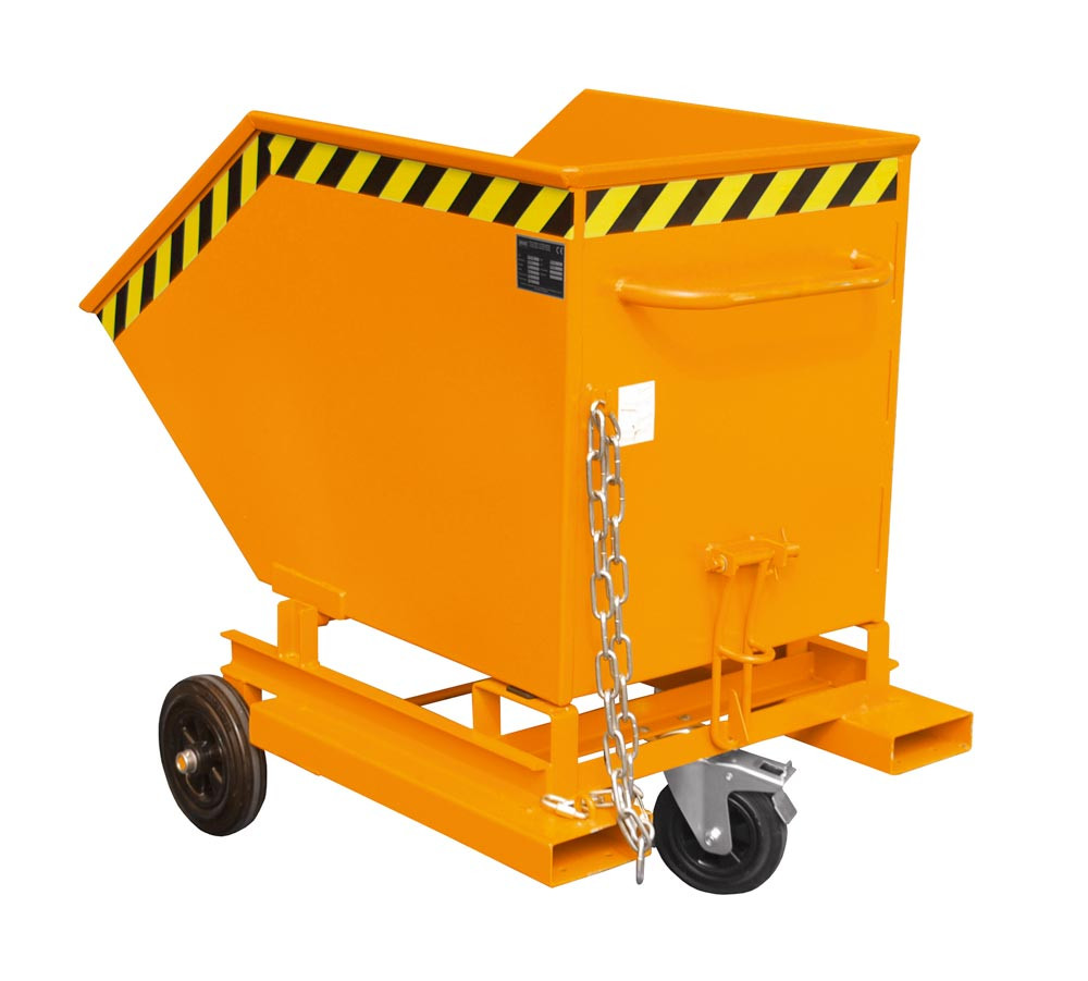 Fahrbarer Kippbehälter mit Einfahrtaschen, Volumen 0,25 cbm, LxBxH 1115x820x990 mm, lackiert RAL 2000 gelborange EP533601
