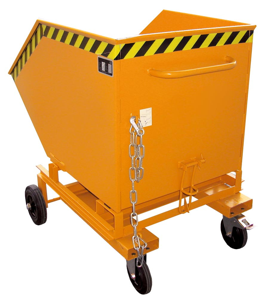 Fahrbarer Kippbehälter mit Einfahrtaschen, Volumen 0,6 cbm, LxBxH 1395x1070x1220 mm, lackiert RAL 2000 gelborange EP533605