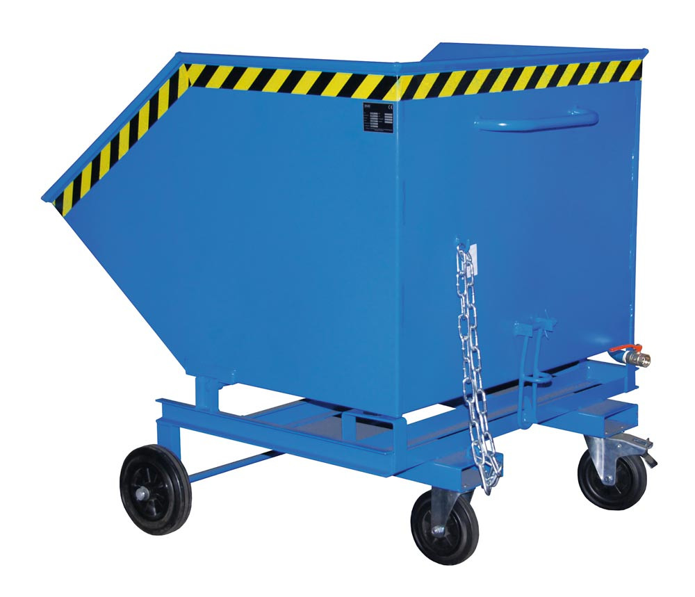 Fahrbarer Späne-Kippbehälter mit Einfahrtaschen, Volumen 1,0 cbm, LxBxH 1420x1340x1290 mm, lackiert RAL 5012 lichtblau