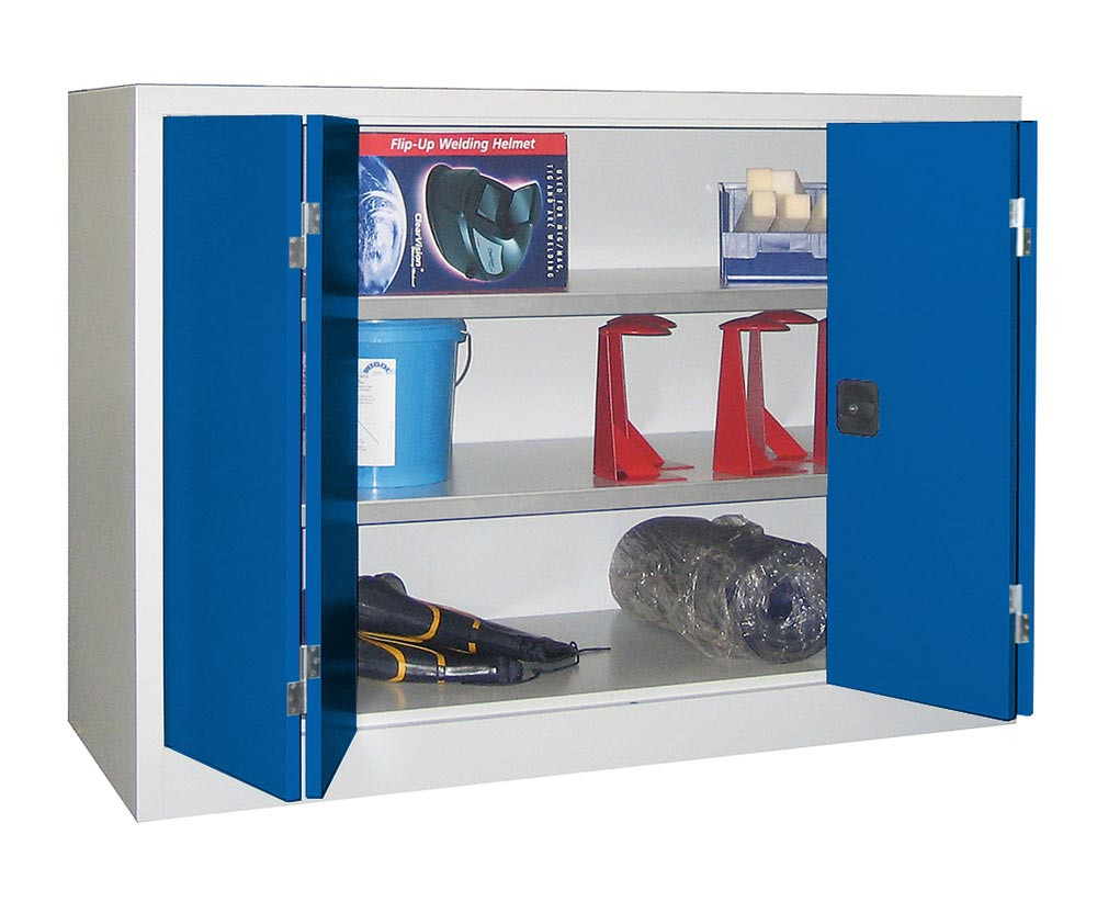 Falttürenschrank, Vollblechtüren, 2 verzinkte Böden, BxTxH 1200x400x1000 mm, RAL 7035/5010 EP528637