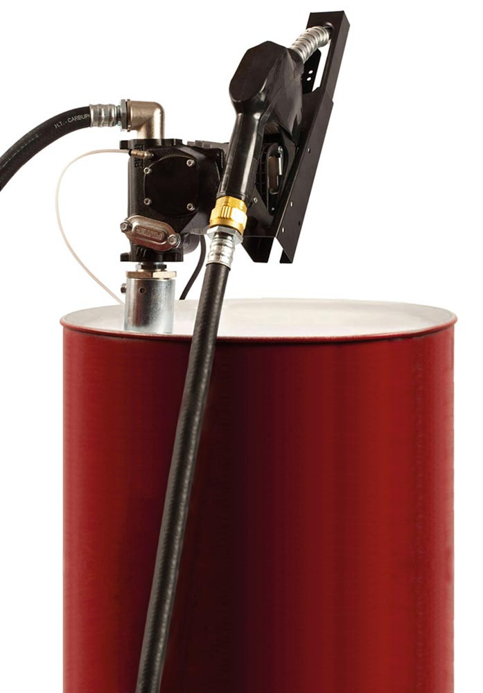 Fass- und Behälterpumpe, komplett mit 4 m Abgabe-+1,6 m Saugschl., Förderl. ca. 38 l/min, Förderh. 9 m, 12 Volt, mit Kunststoff-Zapfpistole EP511656