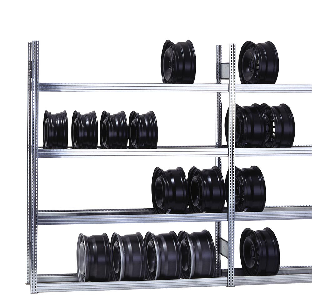 Felgenregal, Anbaufeld, verzinkt, 4 Lagerebenen, Fachlast 250 kg, BxTxH 875x300x2000 mm